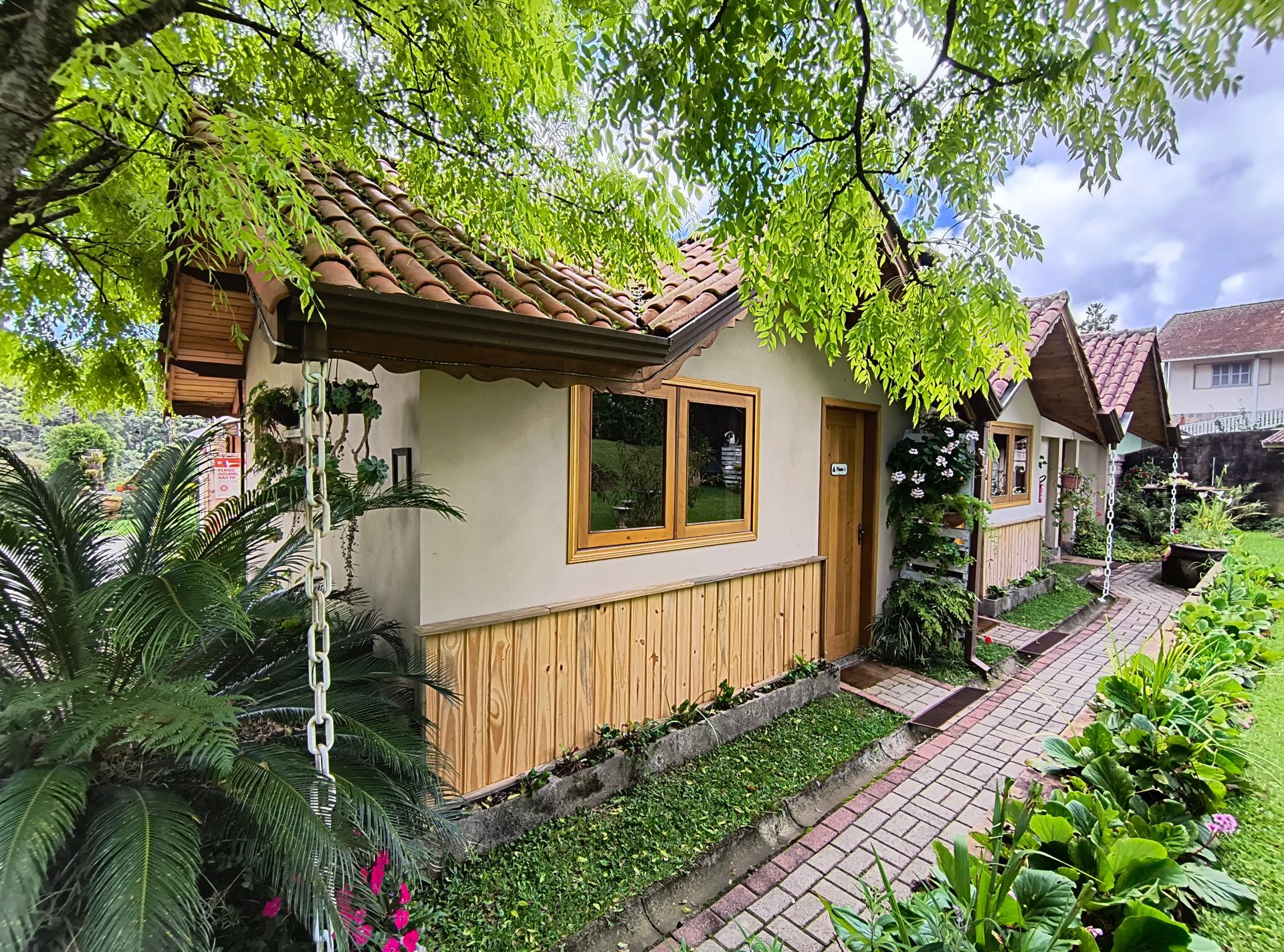 Nossos charmosos chalés estão distribuídos em 1.650 m² de um belo jardim, pergolado panorâmico com vista para as araucárias, além de muita tranquilidade e sossego ao som dos pássaros.