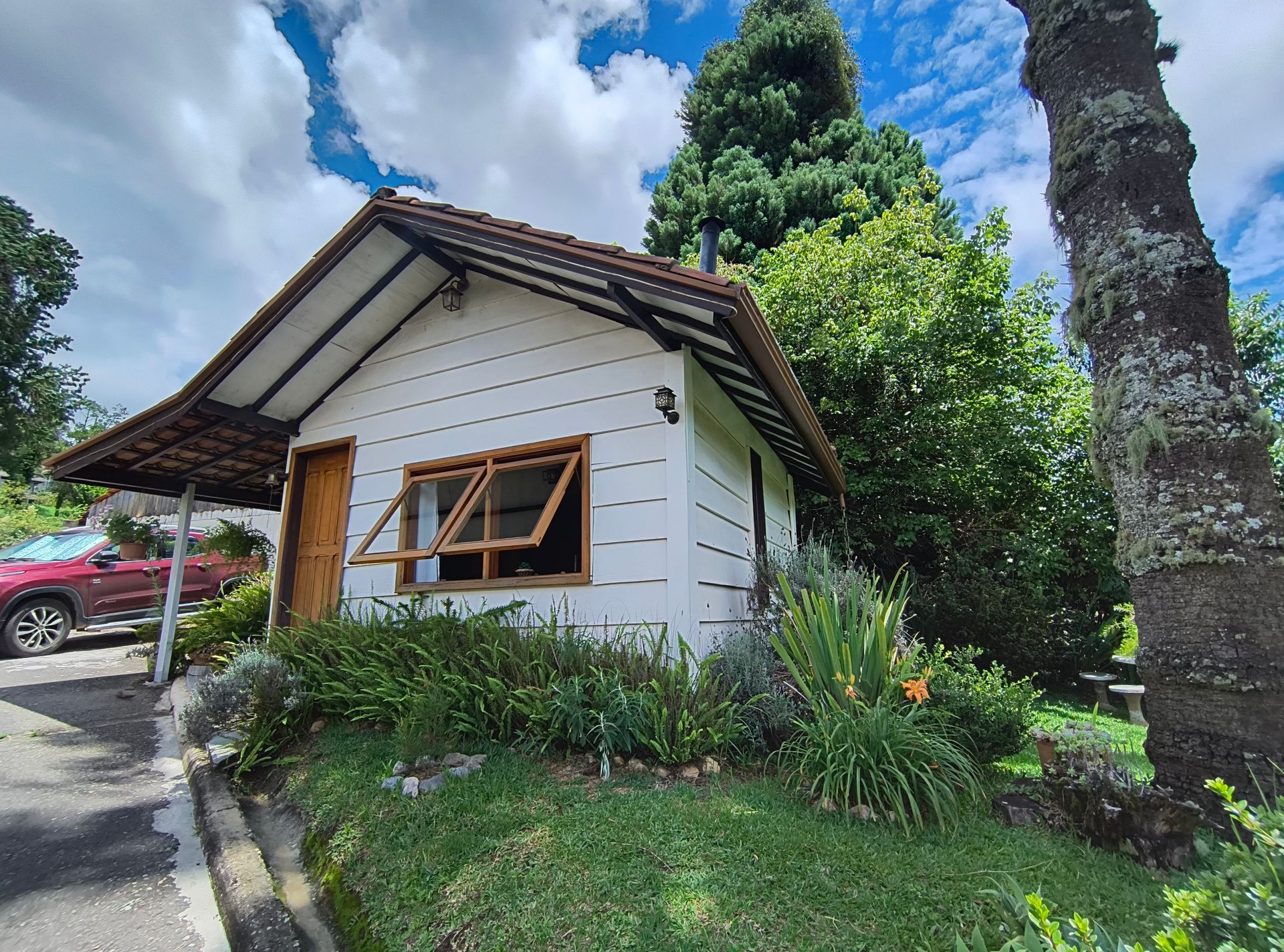 Unindo charme e conforto, os Chalés Pinus oferecem uma acomodação romântica para casal com o requinte de uma lareira convencional a lenha, cama queen size, lençol térmico, "cantinho do chá", luz ambiente, linda decoração e vista para a observação de pássaros em nossa amoreira.