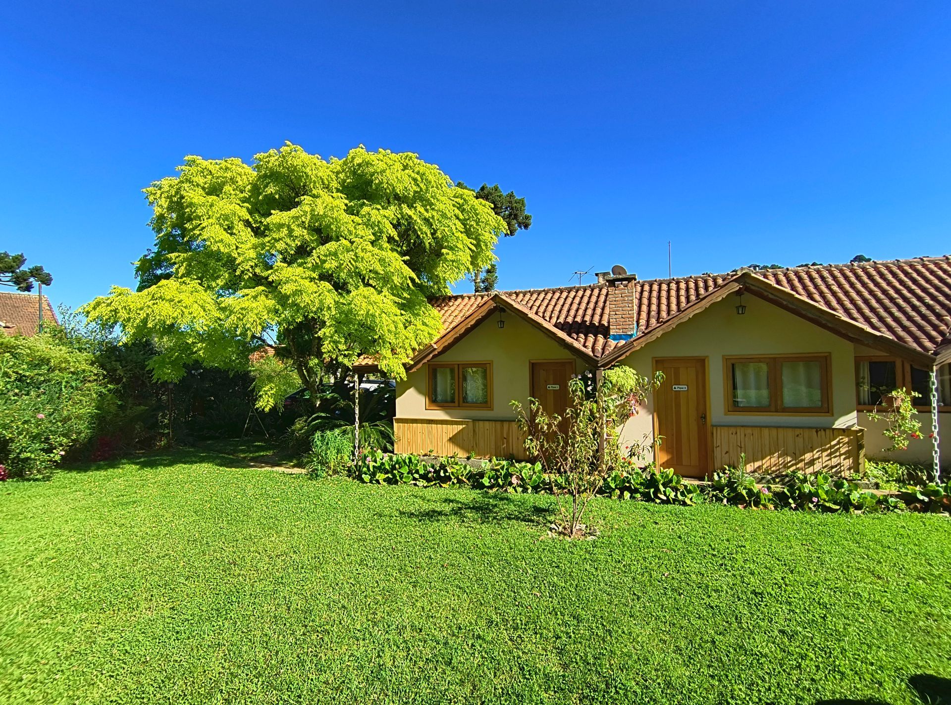 Unidade rústica em madeira, estilo cabana, com lareira convencional a lenha e uma linda vista para a floresta de Araucárias e avenida turística. O chalé Araucária disponibiliza acomodações para casal com cama queen size, lençol térmico, aquecedor elétrico e "cantinho do chá", com disponibilidade de cama extra para acomodação de 01 criança.
